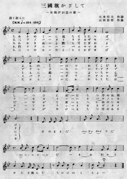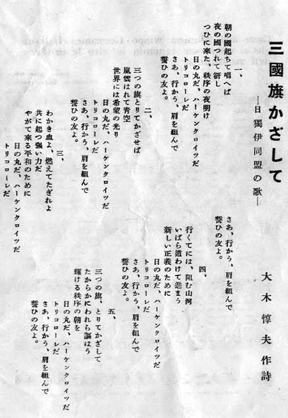 「日獨伊三國同盟の歌「三國旗かざして」の歌詞と譜面